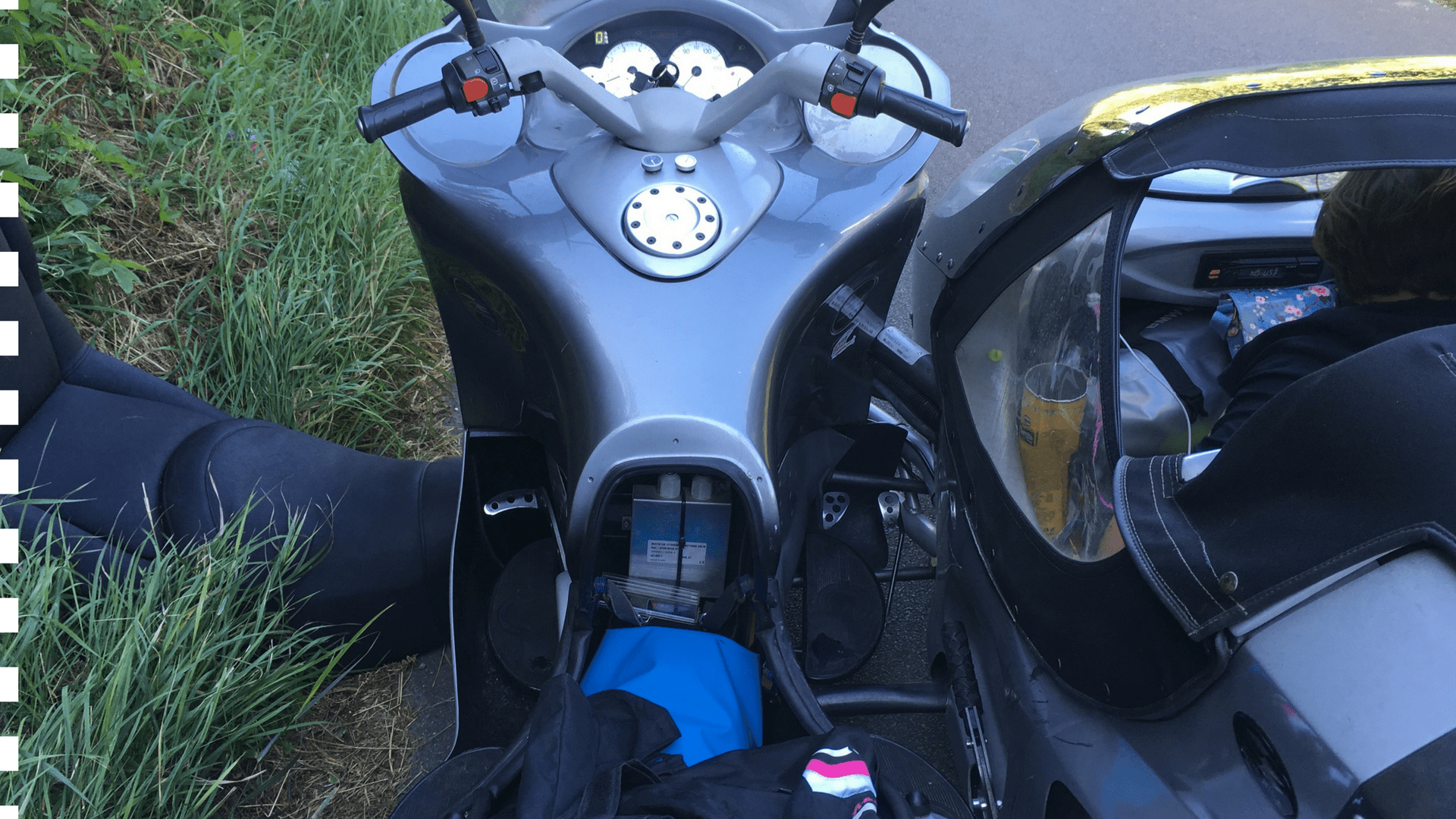 On déambule dans l’une se ces route si étroite que je sens le side toucher les haies des 2 côtés. Puis *BAM *. Le choc.